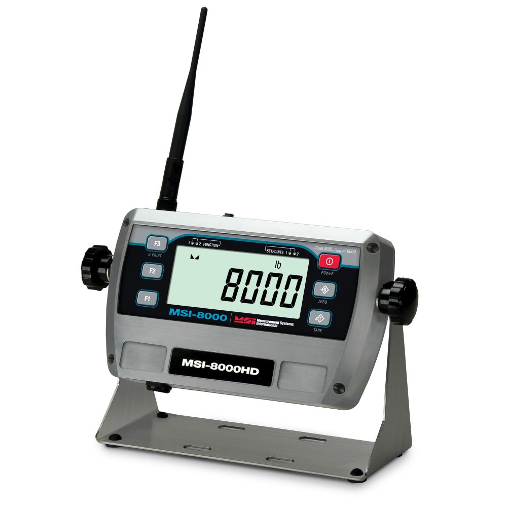 User-definable function keys and a bold six-digit one inch display ease usability and readability. Process control, safety and other systems benefit with optional relays installed to optimize workflow and operator ease. The MSI-8000HD meters may be used as a fully functional weigh meter with the standard inclusion of a precision 24-bit A/D. Additionally, the MSI-8000HD-2 has RF capability to transmit data to a secondary MSI-8000 or non-A/D MSI-8000HD. Wi-Fi, Ethernet or serial option cards are available for direct connections to networks and computers for advanced traceability and reporting.