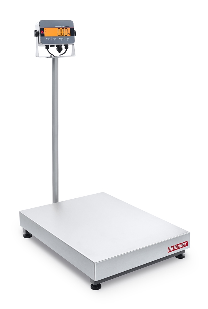 The Defender 3000 Hybrid bench scales are ideal for general weighing, simple counting, and checkweighing applications in production, packaging, warehouse, inventory, shipping, and receiving areas. The Defender 3000 Series features a simple, yet rugged design and stainless steel indicator with tactile keys, multicolor backlit LCD display, and built-in rechargeable battery.