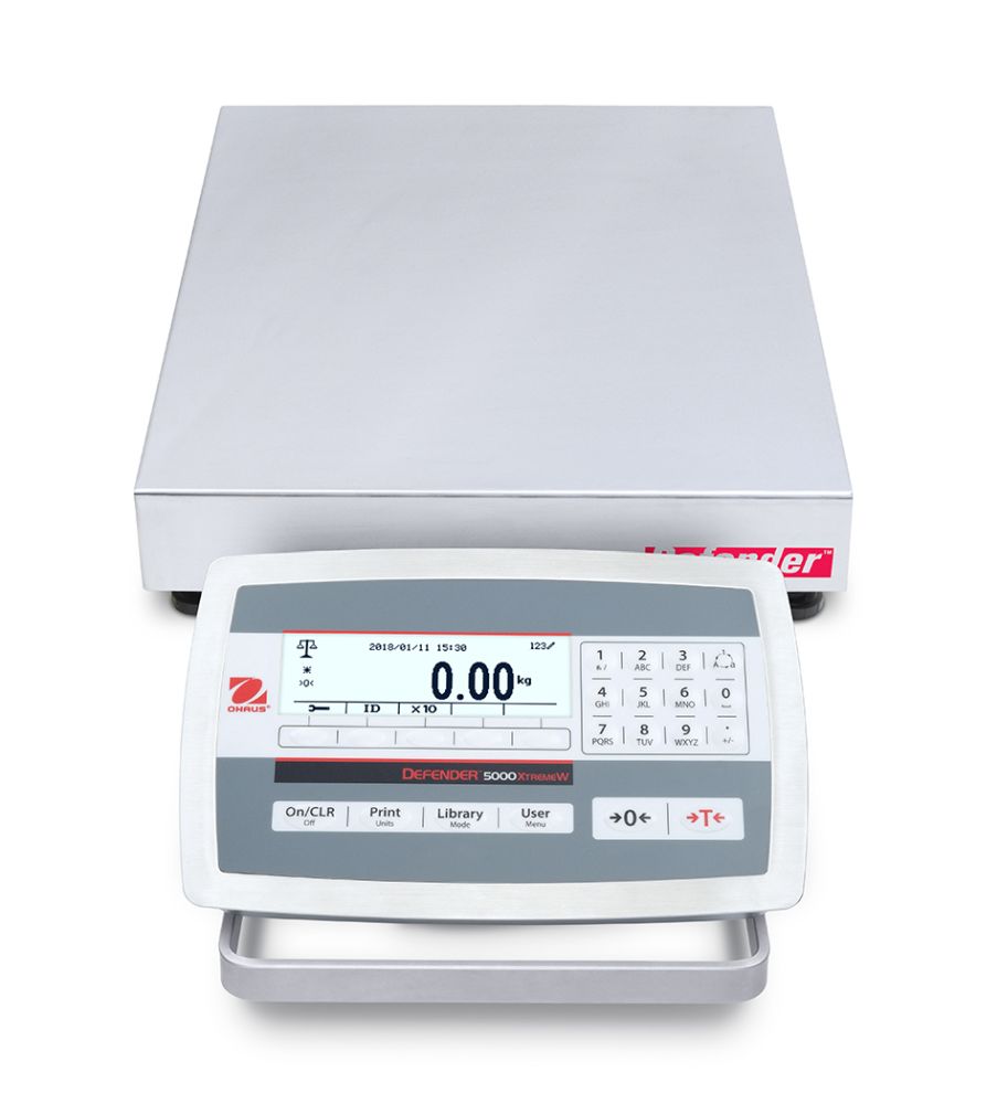 The OHAUS next generation Defender 5000 Series multifunctional bench scale is ideal for a multitude of applications, including production, packaging, inventory and shipping. Built durably and equipped with advanced features such as maximum configurability print output, GMP/GLP data output, library/user management and multiple connectivity options - the Defender 5000 is designed to simplify demanding industrial and commercial applications.