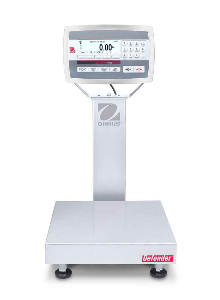 The OHAUS next generation Defender 5000 Series multifunctional washdown bench scale is ideal for a multitude of applications, including production, packaging, inventory and shipping. Built durably and equipped with advanced features such as maximum configurability print output, GMP/GLP data output, library/user management and multiple connectivity options - the Defender 5000 is designed to simplify demanding industrial and commercial applications.