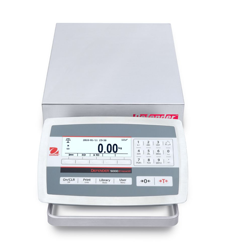 The OHAUS next generation Defender 5000 Series multifunctional washdown bench scale is ideal for a multitude of applications, including production, packaging, inventory and shipping. Built durably and equipped with advanced features such as maximum configurability print output, GMP/GLP data output, library/user management and multiple connectivity options - the Defender 5000 is designed to simplify demanding industrial and commercial applications.