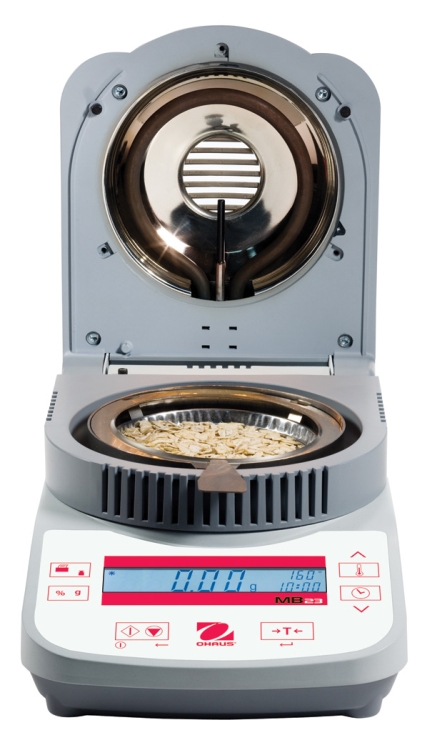 The Ohaus MB23 provides precise moisture content determination at an unbeatable value. With a large backlit LCD display, standard RS-232 port, 110 g capacity with a readability of 0.01g/0.1% and an non-glass infrared heating element, the MB23 offers moisture analysis for any budget.